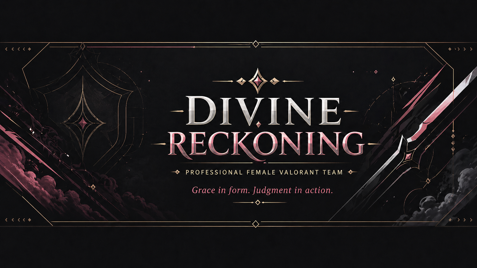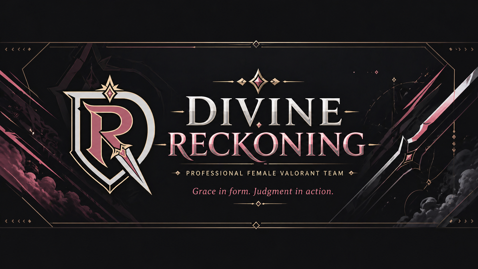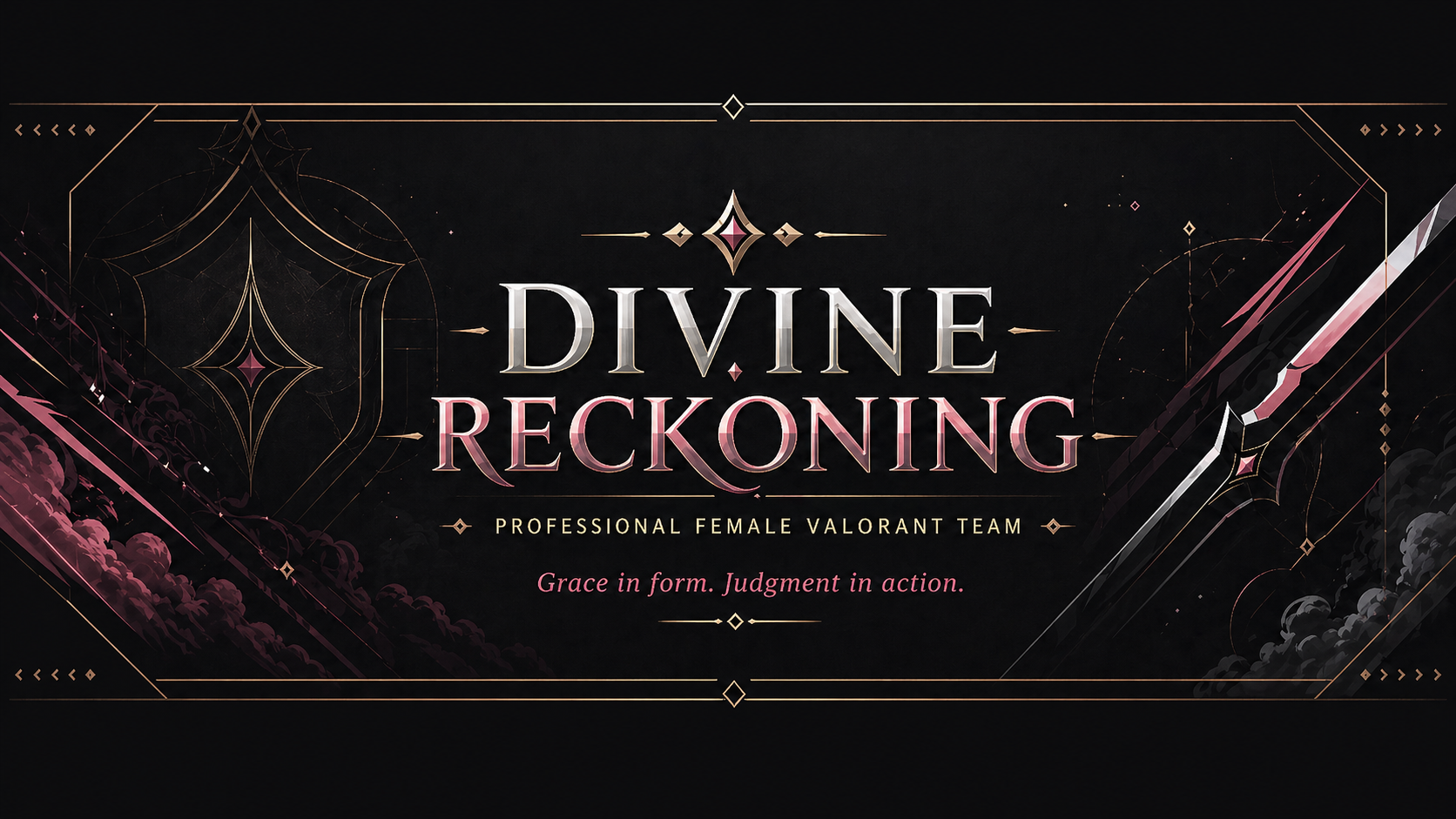 Divine Reckoning is a professional female Valorant team built around tactical discipline, elegance and fearless execution. We bring together competitive ambition, sharp mechanics and a visual identity inspired by divine justice.
